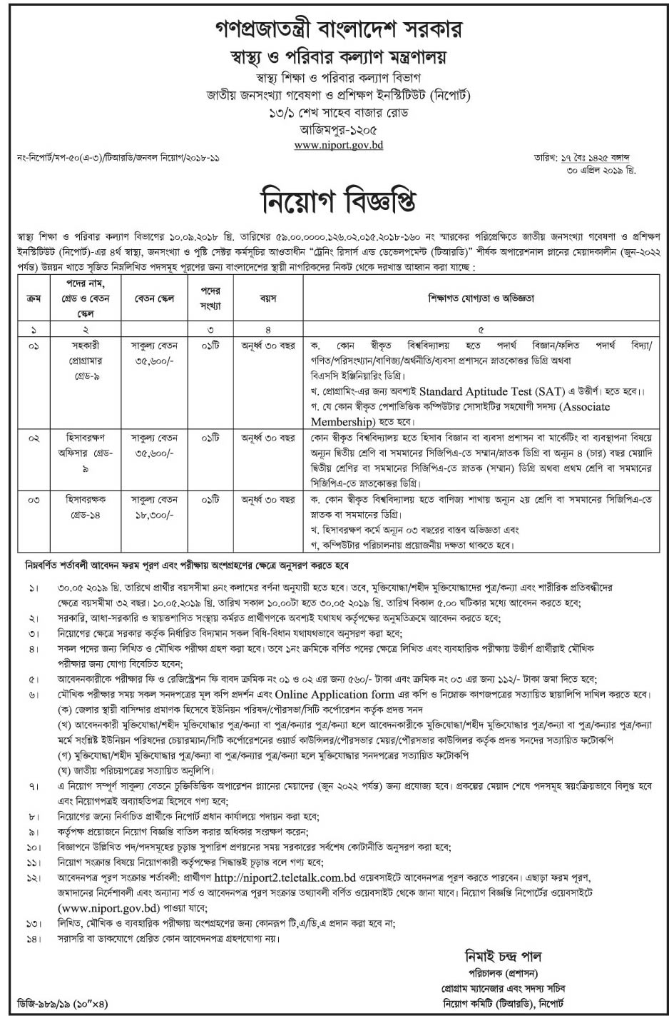 বেতন স্কেল: ১২,৫০০/-৩০,২৩০/ টাকা (সাকুল্যে ২১,৭০০/ টাকা)